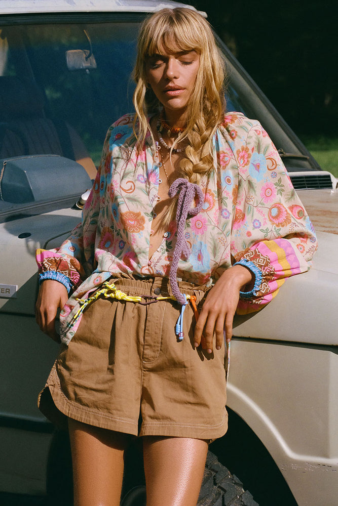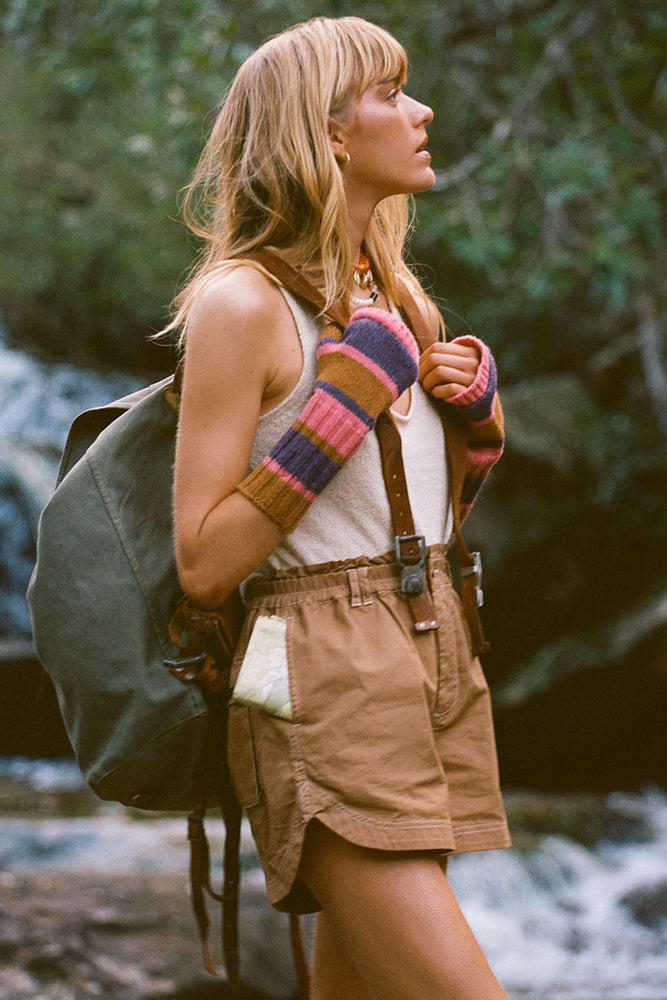 The Renegade Short in Teak is a new must-have staple in your wardrobe with its elastic waist and frill edge for a fun, flattering fit. Crafted from 100% organic cotton, these shorts feature practical front fly opening, side seam pockets, and back pockets—perfect for keeping essentials close. The shaped hem adds a cool twist, making these shorts your go-to for effortless, off-duty style.